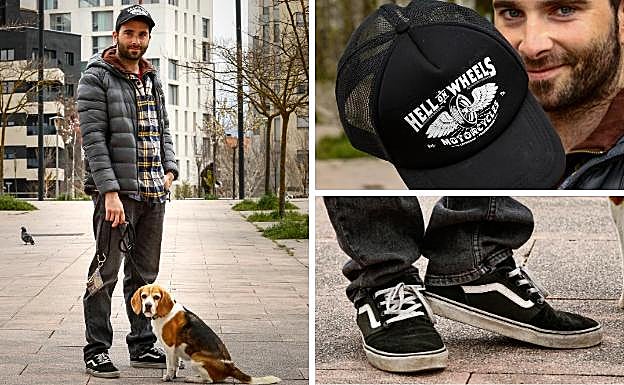 Edu Pereda pasea a su perrita Beka por uno de los jardines que abundan en Zabalgana. Para esta rutinaria actividad se ha decantado por el estilo 'skater', «es el que me ha gustado siempre y como visto en mi día a día», aclara. Lleva un plumas gris (a juego con el cielo de esta mañana), una camisa de cuadros Converse, vaqueros oscuros y zapatillas Vans «que tienen mínimo cinco años». «La gorra me la compré en la última edición del Azkena Rock», agrega. En cuestión de moda no comparte los gustos actuales: «los jóvenes de ahora visten todos como Justin Bieber, con camisetas súper largas que parecen el camisón de mi abuela».