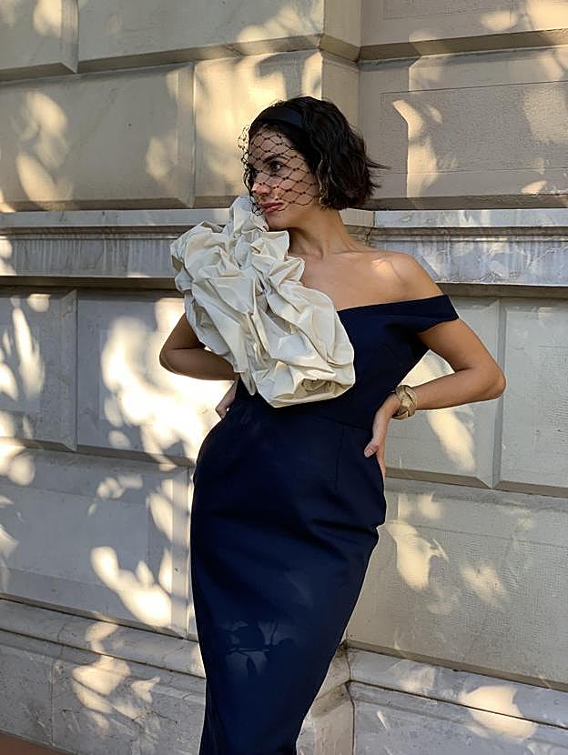 «Un amigo 'costurera', como yo le llamo, hay que aprovecharlo», afirma Ana. Ellos se conocieron hace cuatro años trabajando y se han convertido en un punto de apoyo. «Hay que ayudar y fomentar los pequeños proyectos», puntualiza. El suyo fue un elegante diseño azul marino, de escote 'Bardot' y falda tubo, acompañado por un inesperado volumen en contraste sobre uno de los hombros. ¿El tocado? un toque 'rock' a modo de redecilla que también fue obra de Paul. «Me encantó el resultado y, sobre todo, cómo trabaja y cómo te acopaña durante todo el proceso».