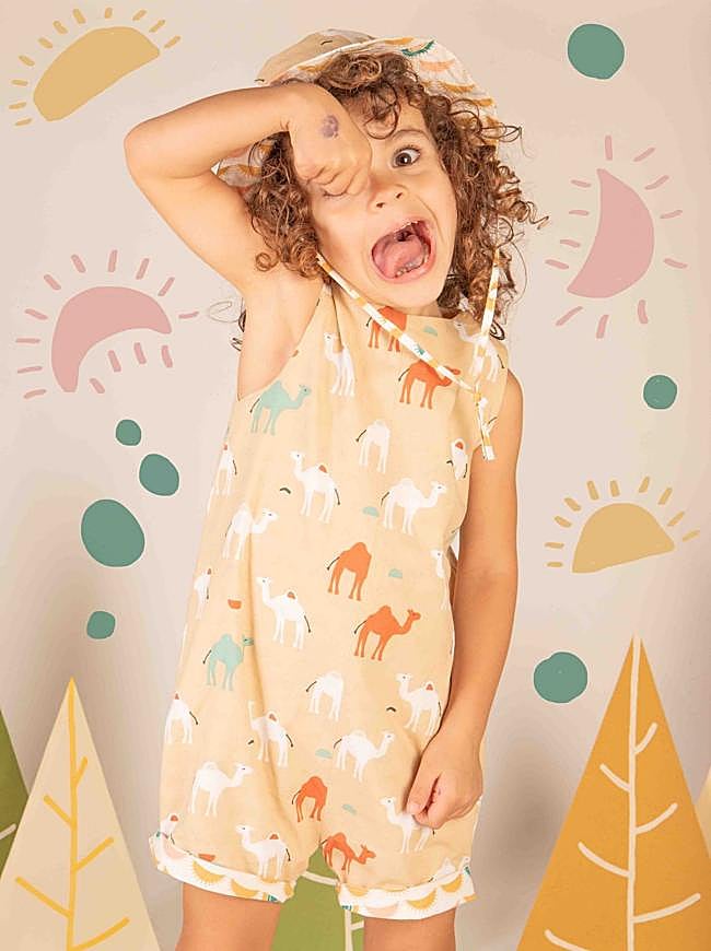 El pelele sirve para todo: salir a pasear, ir a comer o pasar el día en la playa. Incluso puede sacar de más de un apuro. «Muchas amatxus me lo agradecen porque, por ejemplo, si el pequeño se mancha mientras come y, como siempre vamos con prisa, le dan la vuelta a la prenda y aguantan así el resto del día sin tener que cambiarle», explica. Al ser reversibles, permiten elegir entre dos estilos según el momento: un lado más animado o uno más neutro. Maite combina en cada pieza estampados muy distintos para multiplicar opciones. Los peleles, disponibles hasta la talla 4, son también ajustables. «Gracias a sus tirantes regulables y a los patrones amplios, pueden durar varias temporadas. Si lo compramos ahora en verano, nos servirá también para otoño: solo hay que poner un body debajo cuando refresca», apunta.