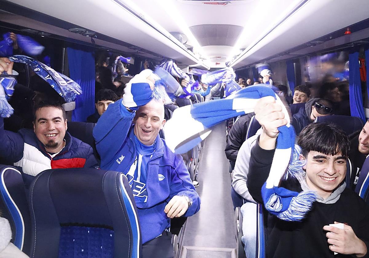 La afición alavesista no falla y vuelve a mostrar su compromiso. Cientos de seguidores han partido a primera hora de este sábado en autobús desde Vitoria hacia Leganés para arropar al Deportivo Alavés en el encuentro que juega a las 14.00 horas ante el combinado 'pepinero', en otra final para tratar de salir de los puestos de descenso.