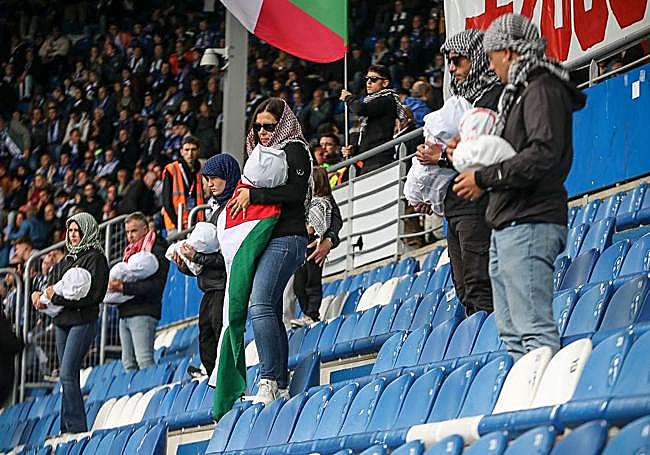La afición del Alavés muestra su apoyo a Palestina en la previa del partido