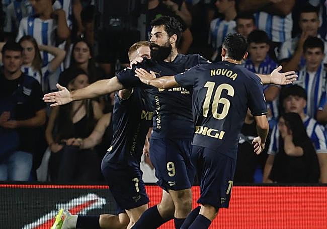 Pica se tiró a la piscina pero había agua. Se mostró sólido ante gigantes. Rozó el gol con un remate de cabeza en los que se elevó, con su 1,90 metros, por encima de todos. Se zafó con fortaleza contra el ataque de la Real y cumplió de forma notable después de saltar tres categorías (Segunda RFEF a Primera) en dos meses. «Ojalá ganemos uno más para la causa», explicó García. Y Pica se subió a un autobús en el que también va en primera fila Villalibre.