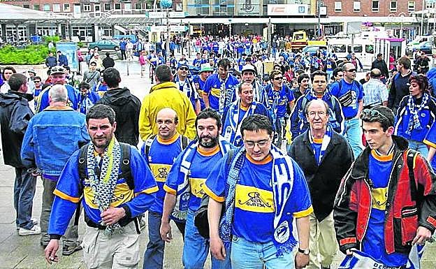 Otros optaron por ir sobre raíles. ¿Imagina un tren lleno a rebosar de aficionados del Alavés? Pues a Dortmund fueron tres el 16 de mayo de 2001. Más de 2.000 alavesistas comenzaron su viaje la tarde anterior, cuando salieron de Mendizorroza en autobús rumbo a la estación de ferrocarril de Hendaya. Desde la frontera francesa partieron para llegar a la ciudad alemana 20 horas después, con paradas técnicas en Burdeos y París. «Mucho tiempo en el vagón, pero muy ameno. Ya en el autobús la gente iba con mucha ilusión y mucha alegría, era una fiesta», rememora Íñigo Jiménez, que hizo el trayecto con sus amigos. «Todo el viaje fue risas y más risas, y hasta la vuelta. El tren era una fiesta total, y fueron muchas horas pero daba igual, lo aprovechamos cada segundo», recuerda.