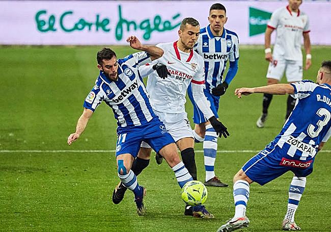 En su última campaña en el Sánchez-Pizjuán, su brújula dejó de apuntar al césped. Después de tres años siendo importante en el Sevilla, ganando en ese periodo dos Europa Leagues (2020 y 2023) y disputando en cuatro ocasiones la Champions, el nuevo futbolista del Alavés desapareció de las alineaciones. El adiós de Monchi en verano y de Mendilibar en octubre cortó los minutos de un futbolista que venía de hacer un sobresfuerzo en la 2022-23, jugando 'tocado' en el talón de Aquiles. En ese sufrido periodo marcó incluso un gol clave ante el Fenerbahçe camino de la 'Séptima' corona continental. Sin embargo, este problema físico condicionó su rendimiento.