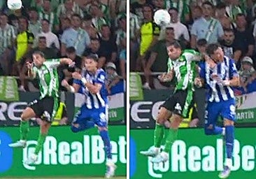 La acción que el Alavés ha reclamado penalti por codazo a Garcés