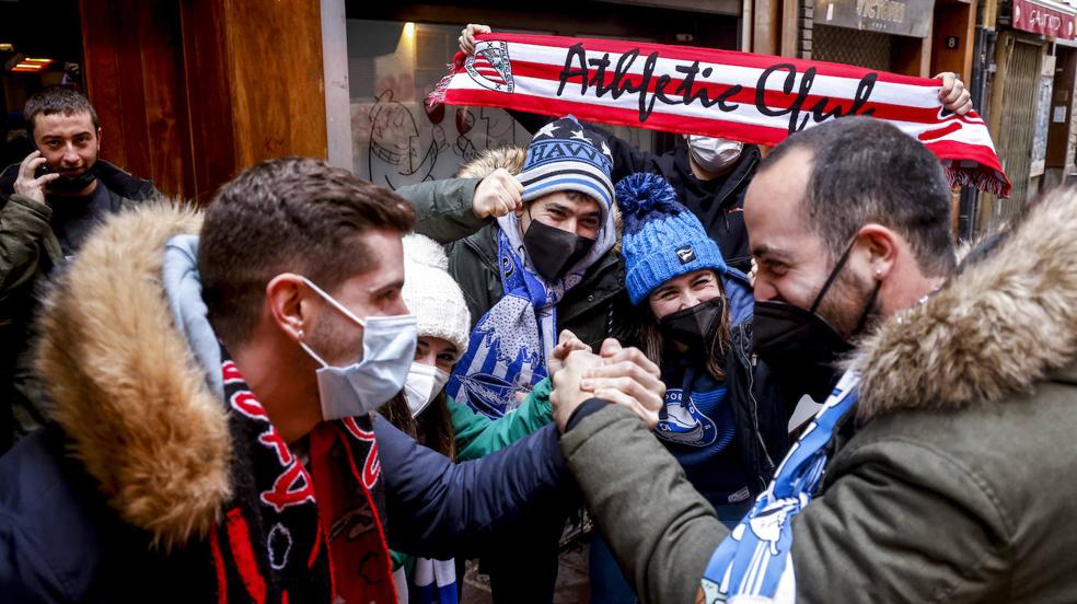 Muchos, lo que se trasladaron desde Bizkaia, llegaron varias horas antes del arranque del choque. Durante toda la mañana se pudo ver un mar de camisetas y bufandas rojiblancas intercaladas con otras albiazules por las calles de Vitoria. En especial, en el Casco Viejo. Parte imprescindible de toda buena previa, pese a las inclemencias meteorológicas. El buen ambiente se percibió durante toda la jornada entre dos aficiones que viven un momento dulce de su relación.