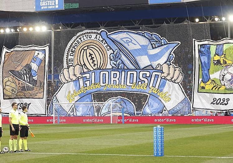 El último tifo de una temporada memorable en MendizorrozaDiez murales fastuosos distinguen a la afición del Alavés por encima del resto