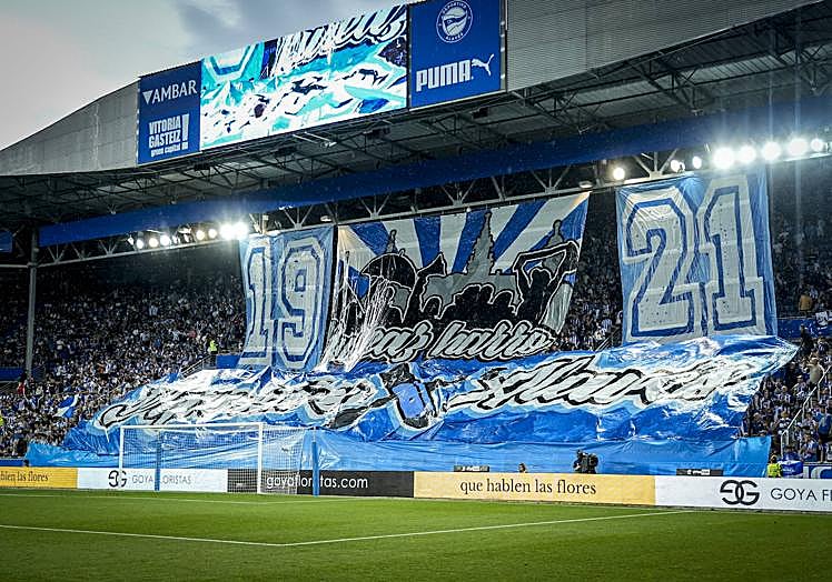 Más de 19.000 espectadores por cuarto partido consecutivo. La viva imagen de que el alavesismo atraviesa uno de sus mejores momentos en la centenaria historia del club. Y para acabar la temporada, otro tifo más como colofón a una campaña memorable. A cargo de Iraultza, que desde el primer partido ante el Mirandés preparó una recibimiento para empezar a cimentar el camino de vuelta a Primera. Estos son los tifos más destacados de esta temporada.