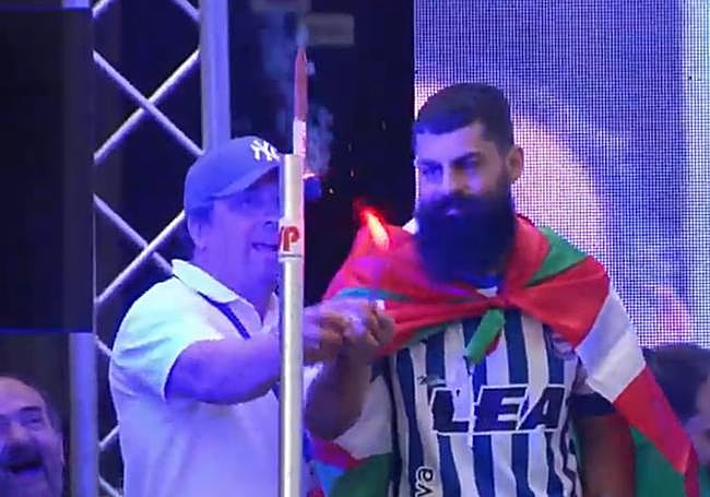 Y es que Villalibre ha tenido que frotarse los ojos al asomarse a la barandilla. «Esto es especial», ha acertado a decir el héroe del 0-1 en Valencia. Antes de salir a la balconada, ha prometido no defraudar con la trompeta, que llevaba bajo la ikurriña. ¿Alguna sorpresa? «He preparado algún cántico para que cantemos todos juntos. No hace falta que yo haga nada», se ha excusado con su humildad habitual. Cuando se ha lanzado a tocar ha ido de menos a más, la verdad. Por cierto, sus compañeros Alkain y Rioja han intentado tocarla, pero sin tanto éxito.