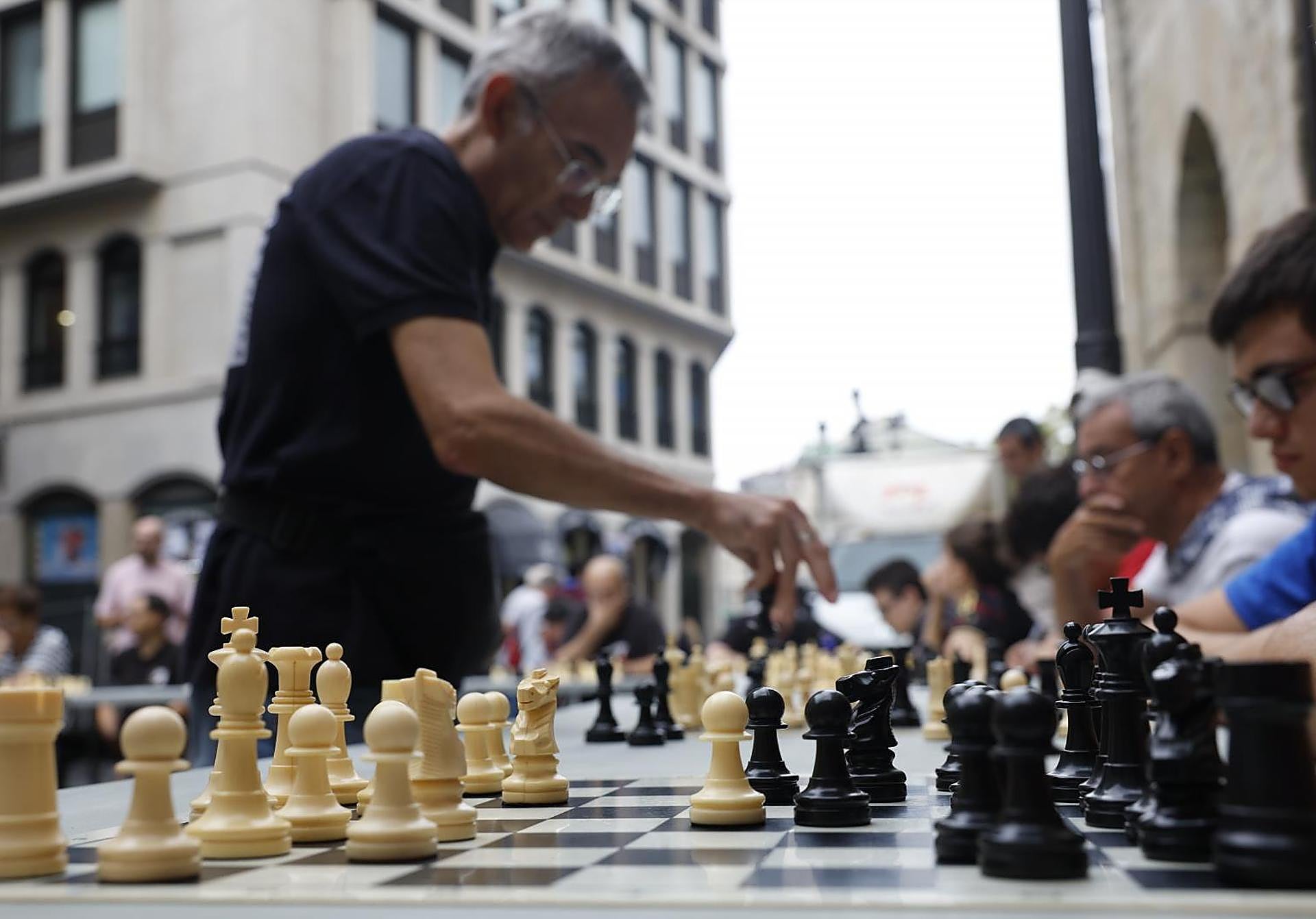 Quien dijo que no se puede practicar deporte sin mantener unos hábitos saludables no tuvo en cuenta a los bilbaínos y su Semana Grande. Tras ... tres días de fiesta que todavía no parecen haber hecho mella en los más juerguistas, el día ha comenzado con una apretada programación de torneos y talleres para ejercitar todo el cuerpo y sacudir la resaca en algunos casos. La mañana ha arrancado en el recinto festivo del Arenal con una actividad a veces olvidada dentro del mundo del deporte: un torneo de ajedrez con partidas simultáneas y a ciegas, solo apto para mentes despiertas. Mientras unos pensaban estrategias al frente del tablero, otros aprovechaban para seguir con la fiesta en el resto de txosnas. Así, el espacio se ha ido llenando de ambiente gradualmente hasta el mediodía. En las casetas más cercanas al puente del Ayuntamiento una multitud también disfrutaba de una exhibición de herri kirolak a la vez que hacían hambre antes de la hora de comer.