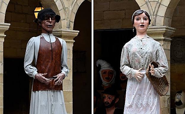 Los gigantes también pueden desempeñar tareas de humanos; si no, que se lo digan a esta pareja, que llegó a ejercer como testigo de la multitudinaria boda de 'el Forano' y 'la Forana' en Zaragoza en 1916. Ataviados con trajes tradicionales -al principio iban de arratianos-, son los personajes antagónicos a don Terencio y doña Tamasa, ya que provienen del mundo rural que rodea Bilbao. Su presencia realza la importancia de su contribución a la villa: el comercio en el Casco Viejo y el Mercado de La Ribera, así como el txakoli de Begoña y de Deusto.