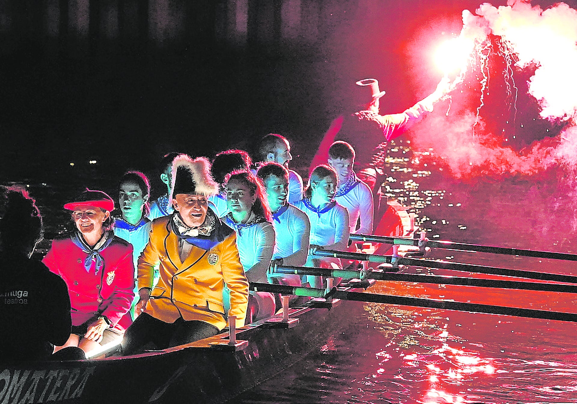 La señora de las fiestas, construida con cartón sobre un armazón de madera, se ha ido echando chispas y envuelta en llamas pero su recuerdo quedará grabado en la memoria de todos, porque ha invadido Bilbao de alegría, juerga, jolgorio, desenfreno y buen humor. La huella que deja un año más es imborrable y la cuenta atrás para verla ya está en marcha. Porque lo bueno de Marijaia es que siempre vuelve. ¡Menos mal! Pasadas las 22.00 horas ha comenzado su despedida con un espectáculo pirotécnico. Entre el puente de La Merced y el Teatro Arriaga, se ha incorporado al séquito de traineras que la han remolcado en su trayecto de despedida.