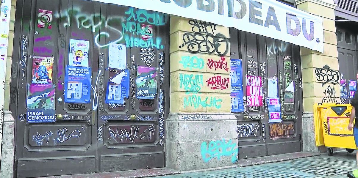 El Ayuntamiento de Bilbao señala que se trata de un «acto vandálico» y que la fachada y las puertas de acceso se limpiarán una vez que concluya Aste Nagusia
