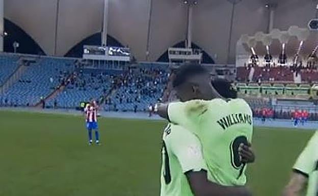 Un gran Athletic vuelve a la final de la Supercopa tras superar con justicia al Atlético con dos goles en el último cuarto de horaA lo grande, con una remontada para recordar, el Athletic estará de nuevo en la final de la Supercopa, un título de prestigio que arde en deseos de revalidar. Visto lo visto este jueves en el estadio King Fahd es obligado confiar en los rojiblancos, que demostraron una personalidad desbordante cuando peor pintaba el partido para ellos. Nunca es fácil doblegar al Atlético de Madrid, ni siquiera ahora que está lejos de su versión monolítica, casi inexpugnable, y el Athletic fue capaz de hacerlo con un final de partido memorable. Y no sólo por los dos goles de un soberbio Yeray y de Nico Williams, cuya entrada al campo en el minuto 69 resultó providencial, sino porque, a partir de ponerse en ventaja, fue capaz de anular al equipo de Simeone, que acabó mostrando una impotencia absoluta.