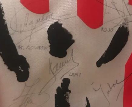 En la descripción, el vendedor detalla que «el banderín es del centenario del club (1998)». Asegura además que «está firmado por los históricos Julen Guerrero, Dani, Koldo Aguirre, Iríbar y Txetxu Rojo». Unas rúbricas que muestran en una de las imágenes que acompañan el anuncio.