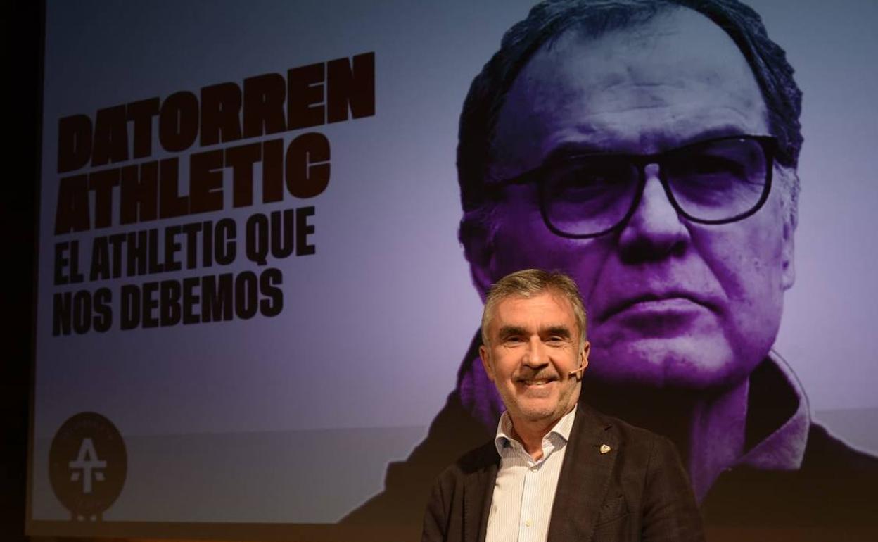 Arechabaleta sonreía satisfecho en la presentación, que observaba con expresión triunfal porque el argentino relanza sus opciones de cara a las elecciones. Además, era consciente de que estaba ante el acontecimiento más potente que se ha vivido hasta el momento en la campaña electoral. El deustoarra dijo que presentaba a un técnico «top 5 mundial» y a un profesional que es «el más venerado por los entrenadores del mundo». «Marcelo piensa que este equipo nos va a dar grandes alegrías», se felicitó.