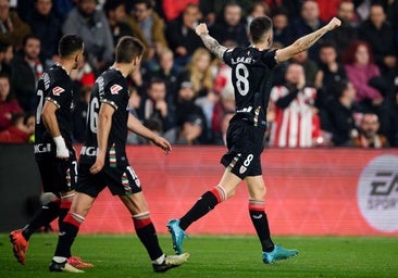 No se quedó ahí. Su papel de revulsivo fue pleno. Recogió otra pelota al borde del área y lanzó sin siquiera controlar la pelota un derechazo que se alejaba cada vez más del portero. «Sabia que había que salir con todo. Ha salido redondo», se felicitó el entrenador rojiblanco. «Si tengo que elegir un gol, me quedo con el segundo. Me ha mandado un buen balón De Marcos. Ha entrado pegada al palo y me he quedado muy contento».