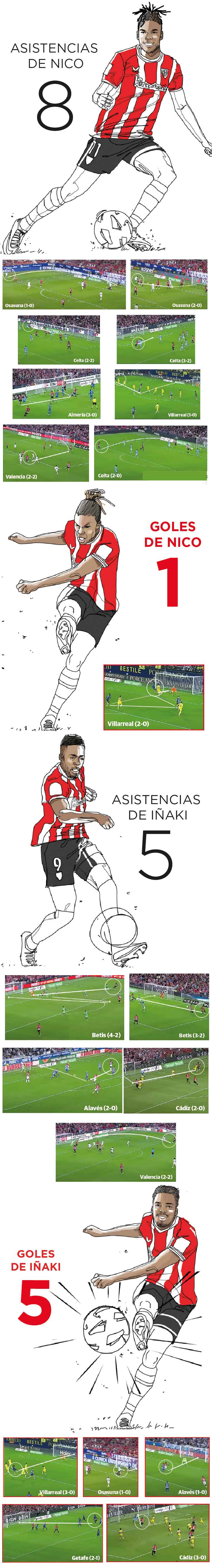 Hablar pues de dependencia está más que justificado, por mucho que esta palabra guste tan poco a dirigentes y entrenadores. Es lógica, por tanto, la preocupación por la marcha en enero a la Copa de África del mayor de los dos hermanos, que junto a Unai Simón está siendo de largo el futbolista más desequilibrante esta temporada. La otra preocupación posible del aficionado -la renovación de Nico- no es tanta, ya que todo parece encaminado para alcanzar su renovación, a la espera del impulso final.