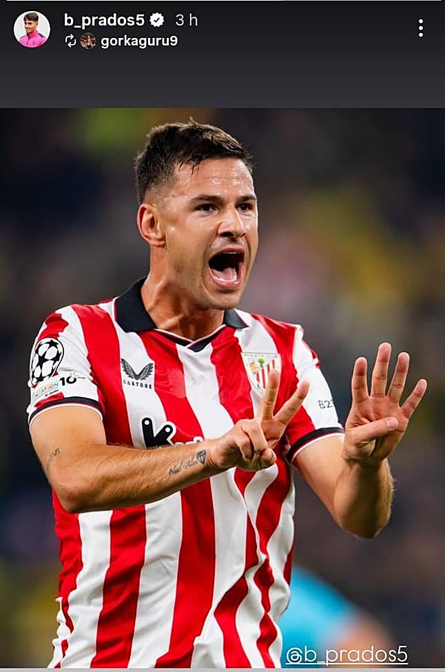 En la celebración, el delantero guipuzcoano dibujó con los dedos de sus manos el dorsal que porta Prados, el número 24, con una mano formó un dos y con la otra un cuatro. Prados, en Instagram, ha agradecido el gesto. Ha respondido a la story de su compañero con un par de corazones y dos puños chocando.