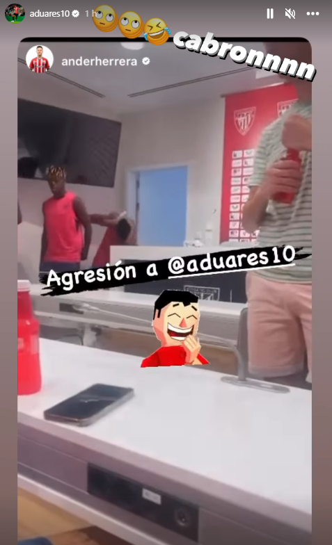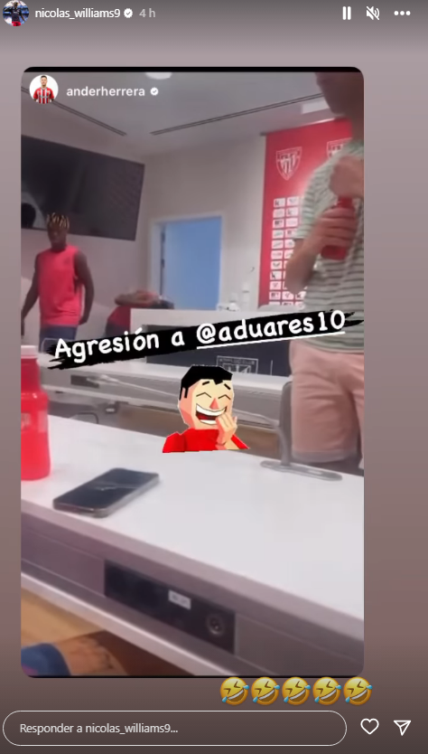 En el momento que se golpea la cabeza contra la televisión, los jugadores del Athletic estaban accediendo a la sala de prensa. Otro jugador que compartió el vídeo fue Nico Williams, quien lo acompañó de varios emoticonos.