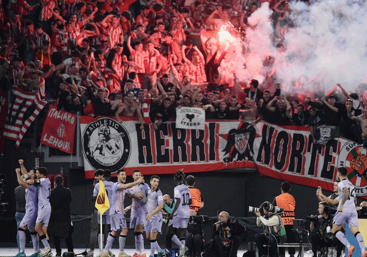 El Athletic se expone a una multa. La Real Sociedad recibió un castigo de la UEFA de 3.000 euros en 2023 por el encendido de bengalas de sus hinchas en el campo del Benfica.