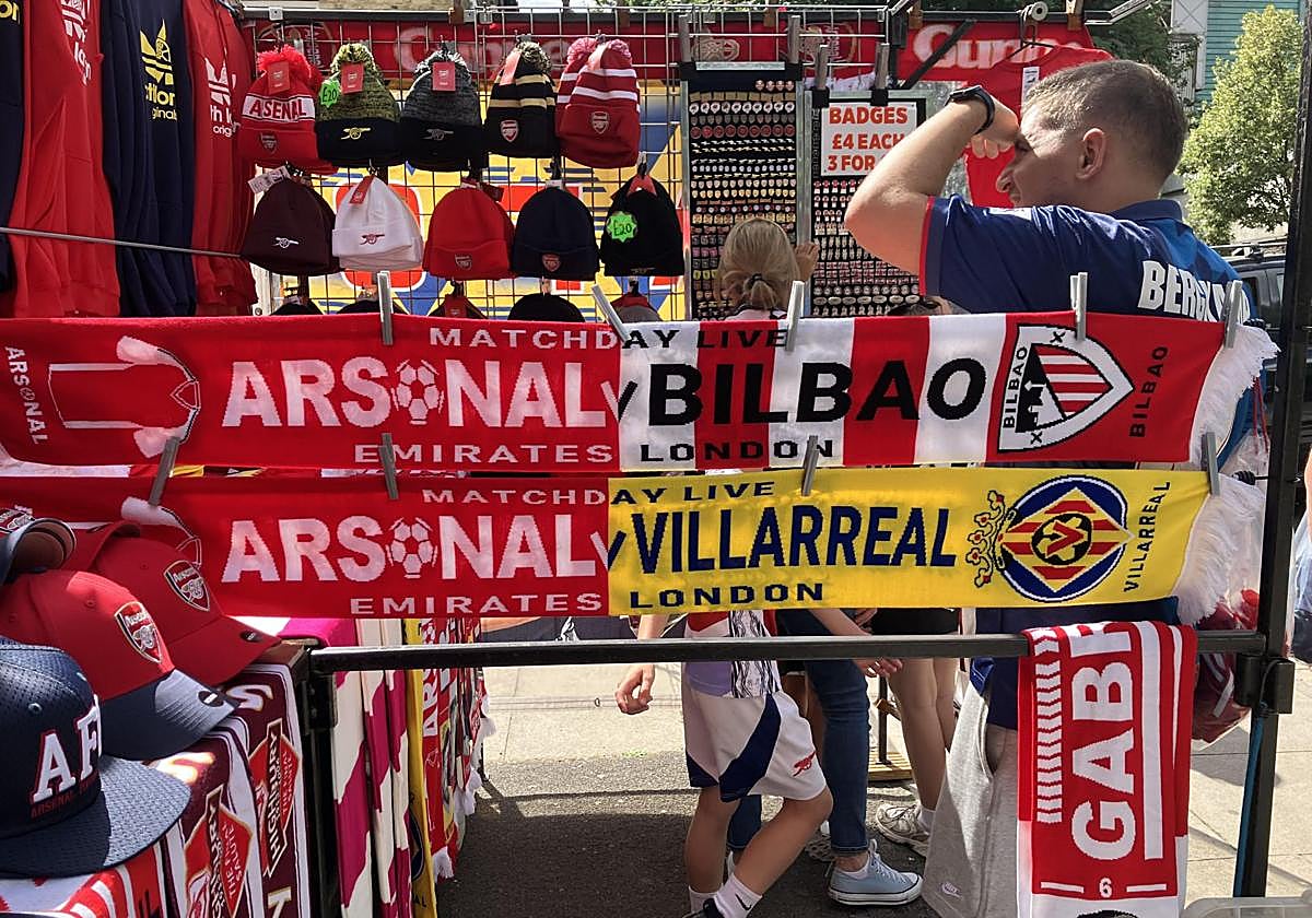 El partido es Arsenal-Bilbao, según las bufandas a la venta fuera del Emirates