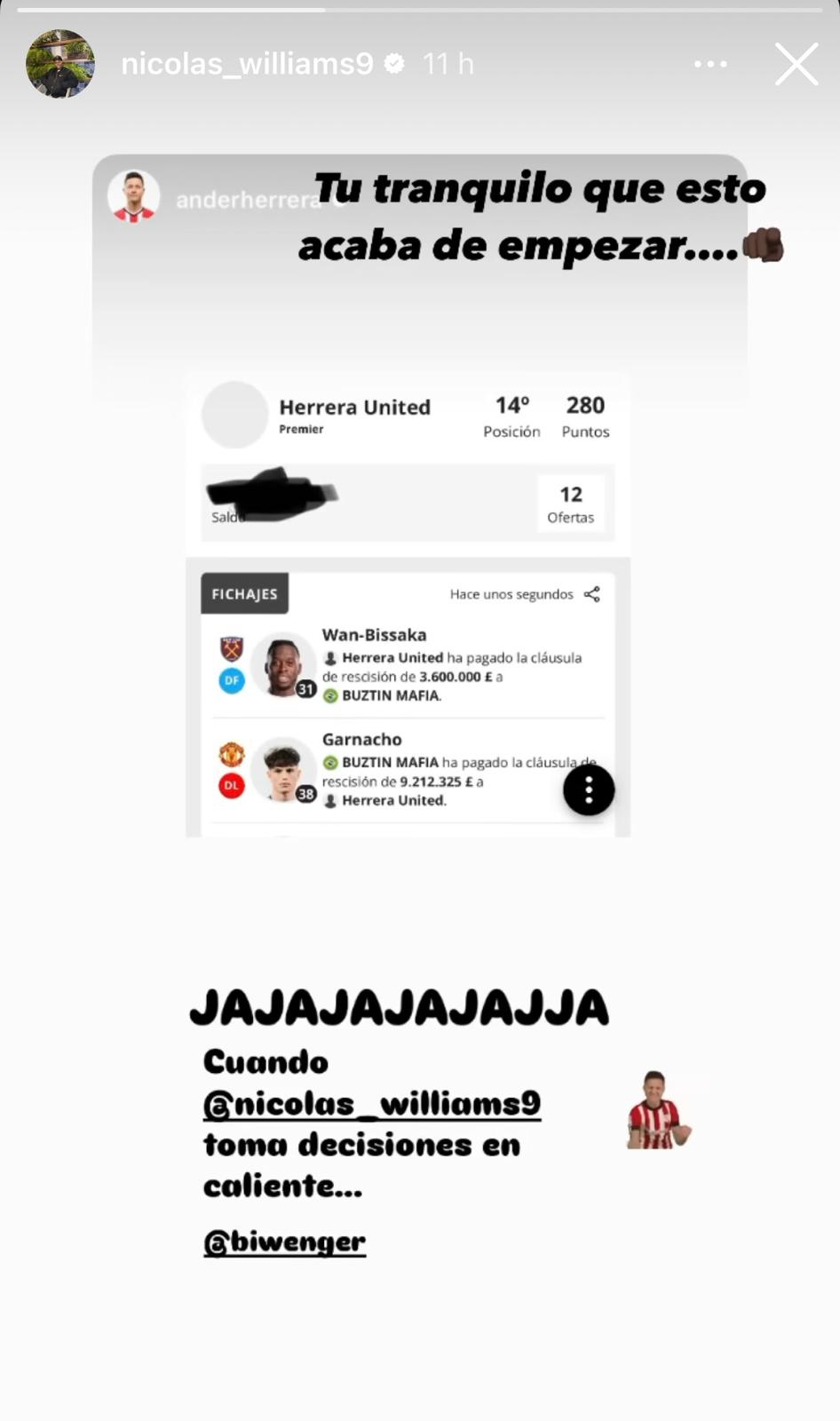 El pique de Ander Herrera y Nico Williams por culpa del Biwenger: «Cuando toma decisiones en caliente...»