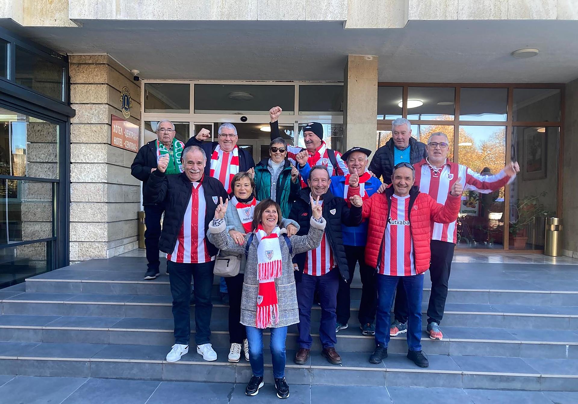 Desde el estadio del Ludogorets a San Mamés hay 3.050 kilómetros de distancia. La peña Piru Gainza de Basauri sirve de ejemplo del esfuerzo realizado Desplazó a 56 personas. «El viaje ha sido estupendo, aunque largo», confesaba la basauritarra María Jesús Embid. «Hicimos Bilbao-Múnich-Bucarest y desde allí en autobús hasta aquí». «Salimos de casa a las nueve menos cuarto de la mañana y llegamos aquí a las once y media de la noche. Casi quince horas».