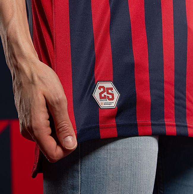 En el frontal, por el momento sin patrocinador, luce el nombre del Baskonia en letras plateadas. El año pasado eran blancas. El otro detalle novedoso está en la parte inferior, con un parche conmemorativo a los 25 años del club en la Euroliga, algo que solo han logrado el Olympiacos y el Barcelona.