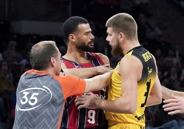 El encuentro resultó muy entretenido, con un intercambio de parciales tremendo y una intensidad que contagió a una grada que se las tuvo con los árbitros. La agitación subió a partir del pique entre Giedraitis y Cabarrot, pasado y presente azulgrana. Cruzaron palabras tras un triple de cada uno y se enzarzaron al final del primer cuarto. El galo pareció salir perdiendo de primeras, ya que Galbiati le dejó en el banco a la vuelta a la pista, pero el lituano, fuera de sus habituales casillas sosegadas, se salió del encuentro, coronado su partido con una falta adicional absurda en un canasta del desbocado Diallo.