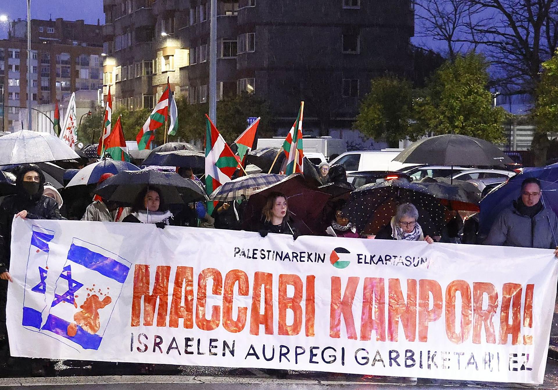 Confío en que en el tiempo más cercano posible, el energúmeno que es el primer ministro de Israel esté en el Tribunal Internacional de La Haya». Entonces, el máximo representante del estado israelí era Ariel Sharon. Los visitas del Maccabi a Vitoria han continuado con diferentes grados de tensión. En la correspondiente a la pasada campaña, una nutrida manifestación de apoyo a la causa palestina recorrió las calles de Vitoria antes de un choque en que se impuso el Baskonia por 89-82.