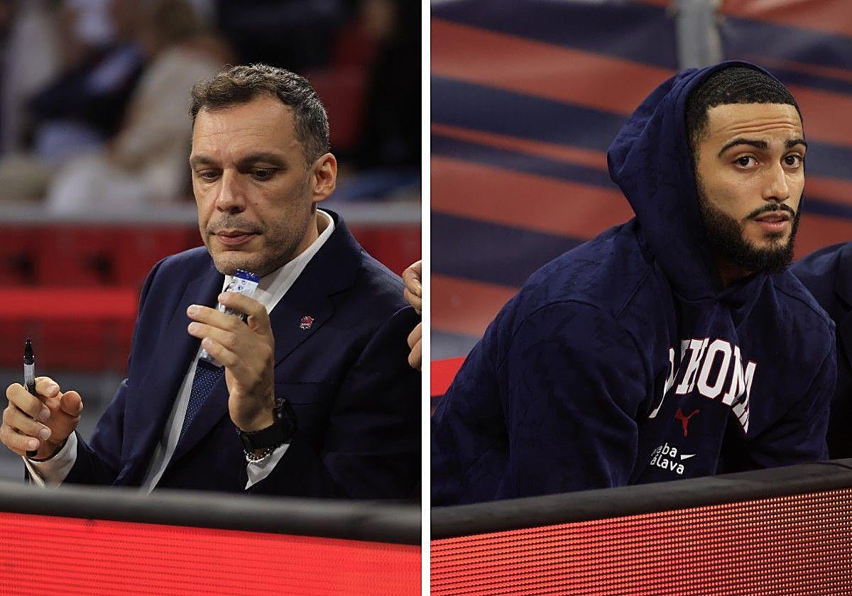 A pesar de las derrotas, el vestuario del Baskonia parece estar unido y alineado con su entrenador. Markus Howard, uno de los jugadores cuyo rendimiento no está a la altura de lo esperado en este inicio de curso, tuvo anoche un sentido detalle con Paolo Galbiati, captado por este periódico. El astro azulgrana, lesionado para el próximo mes, se acercó a animar a su cabizbajo entrenador. Un gesto simbólico pero de gran significado por el momento y porque el escolta fue desconvocado en el encuentro liguero ante el Real Madrid, hasta la fecha la única victoria. Una decisión valiente y de apariencia comprendida por el jugador estadounidense, que trata de erigirse en el vestuario y en el banquillo como un líder espiritual.