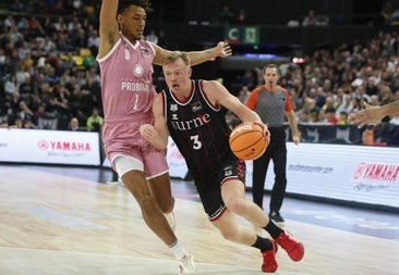 Los visitantes tomaron el mando del partido y del marcador, en el que llegaron a ponerse ocho arriba en los instantes finales del primer cuarto (10-18). Una serie de 7-0 devolvió aire a los pulmones de los vizcaínos y color en sus mejillas, gracias sobre todo al buen trabajo de Harald Frey y Tryggvi Hlinason. El base tiró del carro en la dirección y en la anotación –acabó con 18 puntos, 3 asistencias y 21 de valoración–, mientras que el pívot daba vida en las alturas –14 puntos, 8 rebotes y 19 de valoración–. Demasiado solos como para el que conjunto funcione. La desventaja se redujo a tres después de los diez minutos iniciales (19-22), sin que el triple consiguiese entrar.