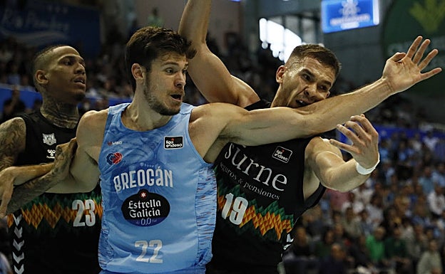 Cabía esperar una reacción porque respirar por las branquias invitaba a una muerte segura, que llegó por inercia. Dio señales de vida el Surne con un parcial acumulado de 2-9 gracias a unos minutos de inspiración de Rabaseda, Hakanson y el siempre activo Withey, que se tradujo en un esperanzador cuatro abajo (48-44). Entonces los árbitros señalaron una antideportiva a Rabaseda y el Breogán despegó de nuevo. Bamforth y Momirov castigaban desde la línea mágica y Happ lo capturaba todo, además de clavar sus aguijones en la pintura. Al igual que Arteaga, imparable y siempre activo contra los bilbaínos, encantado con la dirección de un brillante Quintela.