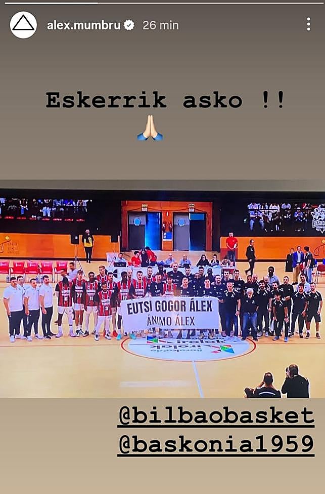 «Eutsi gogor. Estamos contigo». El Bilbao Basket y el Baskonia han lanzado un cariñoso mensaje de ánimo a Álex Mumbrú antes de disputarse la Euskal Kopa. El actual seleccionador de Alemania, exjugador y exentrenador de los hombres de negro, se recupera de una pancreatitis por la que estará dos semanas hospitalizado en Barcelona para atajar definitivamente la enfermedad, que le obligó a ceder el testigo a su segundo en el Eurobasket que acabaron conquistado.