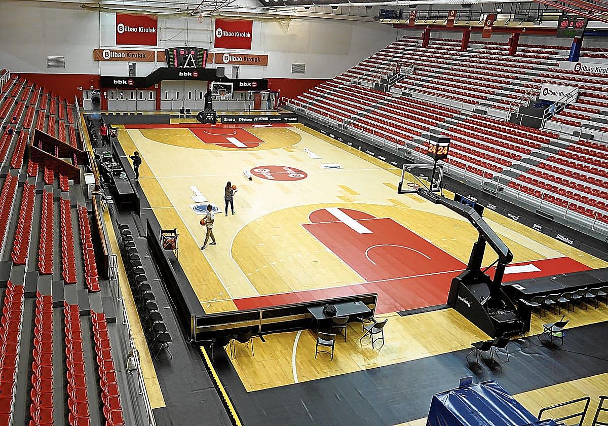 Abrir de nuevo las puertas de La Casilla ha supuesto muchas horas de trabajo. Había que actualizar la instalación, acondicionarla para acoger un partido de baloncesto de la FIBA con miles de personas en las gradas y trasladar bastantes elementos de Miribilla. Se bajaron las canastas y los cubos –aparatos que se colocan encima del tablero y dan el tiempo de la posesión–, las banderas y el material de animación, se tiró el cableado, se pusieron los focos e incluso se pintó la cancha entre el viernes y el domingo pasados. Y anoche se volvieron a repasar algunos detalles para que todo quedara perfecto. La zona se coloreó de rojo, como la camiseta que llevará el Surne.