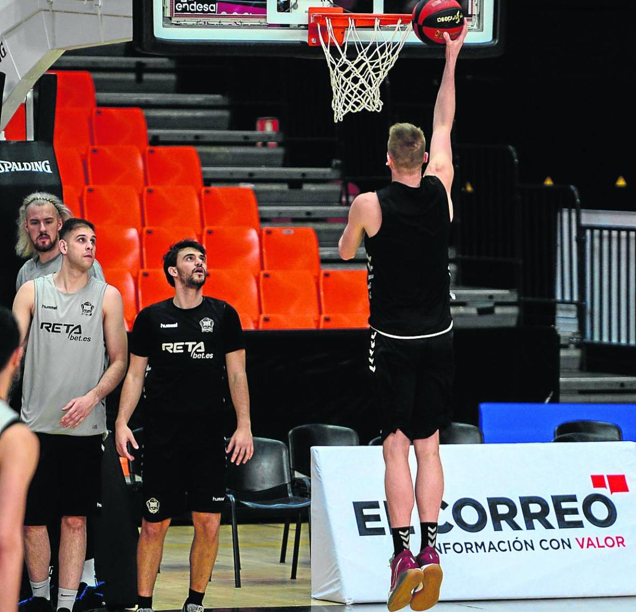 Cuaderno de bitácora. Día cuatro de confinamiento. Sin novedad en el frente. La expedición del RETAbet Bilbao Basket pasó la víspera su segundo test PCR y ... la ausencia de noticias es la mejor confirmación. Otro negativo para la colección. Que lo sean todos. Tocaba quedarse en el hotel e improvisaron un gimnasio en el enorme hall ante los ascensores en la planta quinta, su territorio inviolable. Esterillas y ambientación musical para el trabajo junto a Roberto Molina. Estiramientos, relajación y otras actividades que el preparador físico convertiría en epatantes expresiones en inglés. Y a continuación sesión de vídeo ya centrado en el partido inaugural contra el Baskonia.