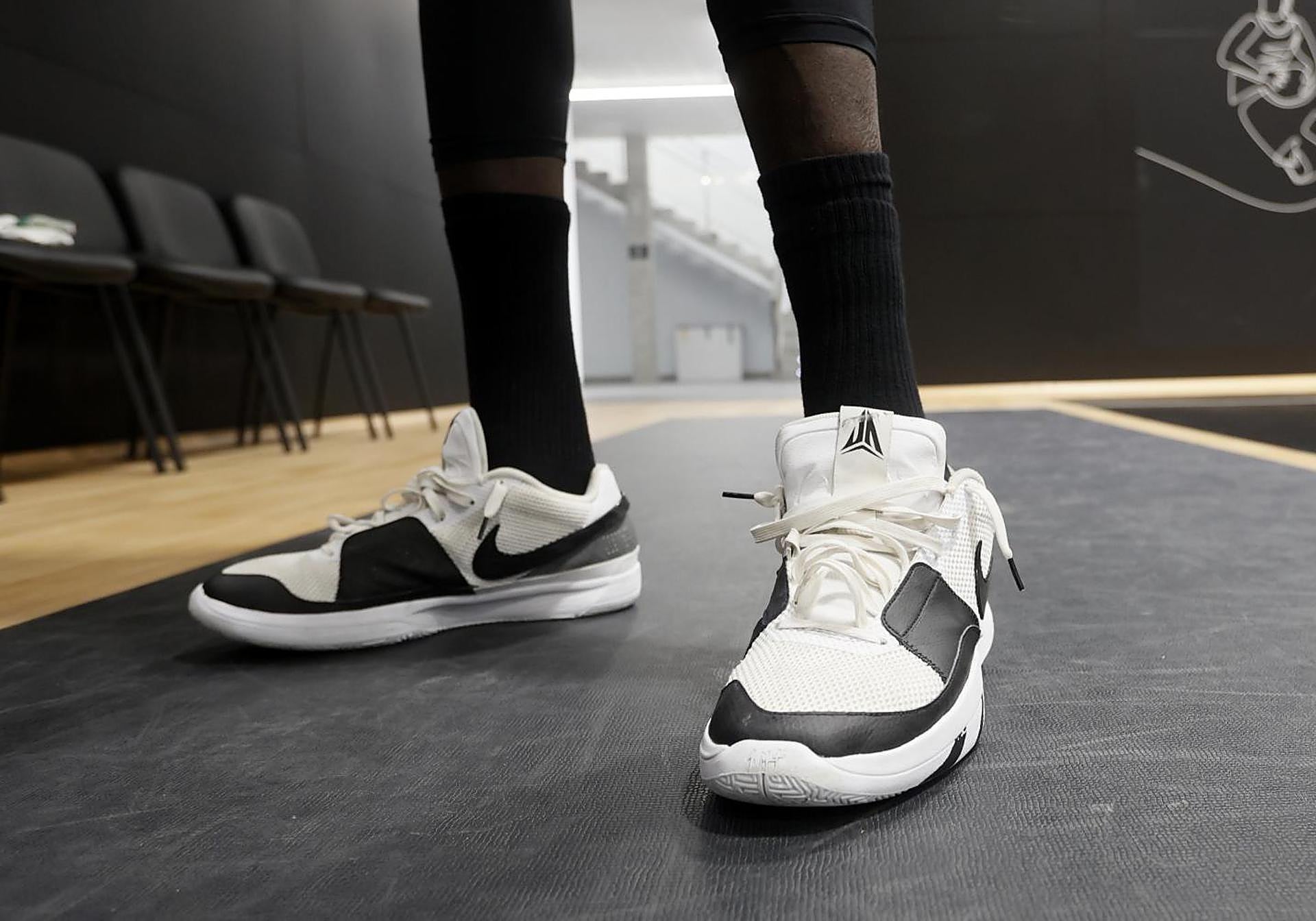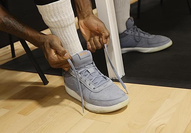 El pívot de Illinois revela que maneja «ocho pares de zapatillas» en la presente temporada. «Siempre Nike», deja claras sus preferencias. Marvin Jones está encantado con sus «Devin Booker» y en cuanto nota el más mínimo desgaste «traigo otras». Calza un 49,5-50 y se preocupa por su comodidad, un hombre que suele trabajar en las alturas. «Me siento cómodo con ellas. Las probé al inicio del año... y aquí sigo».