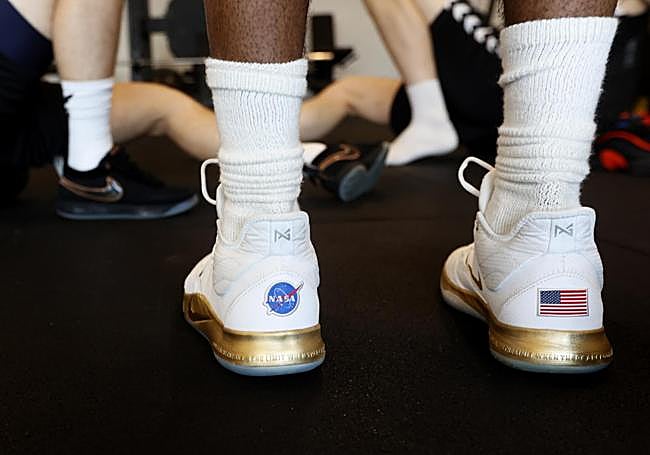 «Tengo tres pares en casa; en total, 11». Muhammad-Ali Abdur-Rahkman es otro de los que presta mucha atención a sus zapatillas. «Me gustan blancas», acota. De hecho, las que lleva lo son y en la parte posterior llevan incorporadas una bandera de Estados Unidos y el logo de la NASA. «Es una edición especial de las Paul George, de 2019». El alero californiano es fan de la agencia espacial y de ahí su presencia en las playeras, que encantan al escolta del Surne. «Igual salto más alto con ellas», bromea. Confiesa que suele cambiar mucho de un partido a otro e incluso que ha llegado a hacerlo en un mismo encuentro. ¿Precio? Duda, y pone una horquilla: «Entre 200 y 300 euros».