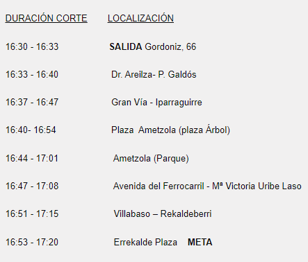 Precisamente entre las 16 y 18 horas se cerrará Gordóniz, entre las vías León de Uruñuela y la Plaza Rekalde. La prueba, de 6,6 kilómetros, transcurrirá por Doctor Areilza, Pérez Galdós, Gran Vía, Iparraguirre, la plaza Ametzola, el parque que lleva el mismo nombre, la avenida del Ferrocarril, María Victoria Uribe Laso y Villabaso, para finalmente concluir en la plaza Rekalde. La multitudinaria carrera que despedirá el 2023 también provocará la ocupación parcial de la calzada, el bidegorri y la zona peatonal. Sí se permitirá sin embargo el acceso y salida de los accesos a los garajes afectados mediante las indicaciones del personal de seguridad del evento.