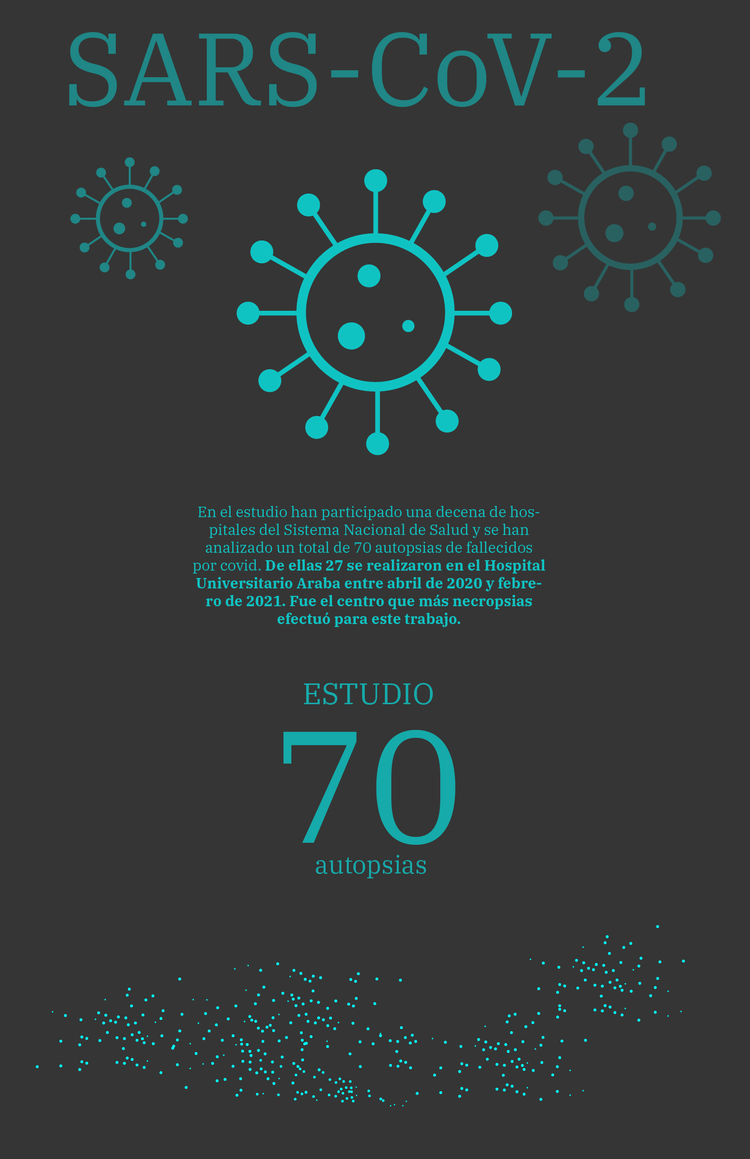 Así se recoge en un estudio en el que han participado una decena de hospitales del Sistema Nacional de Salud, y en el que el Hospital Universitario Araba de Vitoria (que aúna a Txagorritxu y Santiago) ha desempeñado un papel principal. Los investigadores llegaron a estas conclusiones tras realizar entre todos los hospitales participantes 70 autopsias completas de fallecidos por covid. 27 de ellas –el 38,5% del total– las realizaron los profesionales que trabajan en el área de Anatomía Patológica y de Enfermedades Infecciosas de Txagorritxu entre abril de 2020 y febrero de 2021.