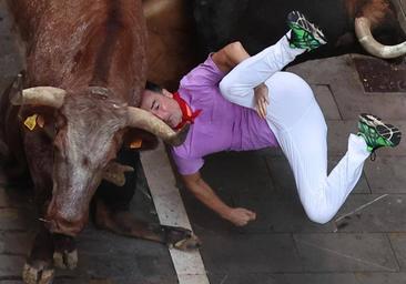Entre los contusionados se encuentra un bilbaíno de 20 años de edad, que ha sido arrollado por uno de los toros en la entrada a la plaza. El joven atendió al Diario de Navarra tras el encierro y contó lo sucedido: «He esquivado a uno y el siguiente me ha golpeado de lleno», ha explicado A.H., que tiene golpes en diferentes zonas del cuerpo.