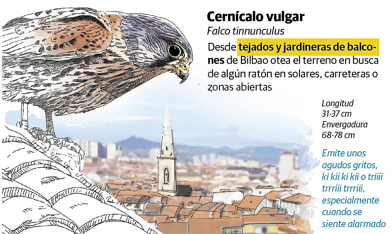 El centro de Bilbao es coto de caza para halcones, gavilanes, cernícalos y rapaces nocturnas de gran porte y belleza como el cárabo y la lechuza. «Siempre han estado aquí. Su número no ha variado, excepto en el caso de las lechuzas, porque viven en edificios viejos, muchos se han rehabilitado y entonces no tienen refugio», explica Iñigo Zuberogoitia, doctor en biología e investigador de la UPV. «Aquí hay mucha comida. Las presas fundamentales son palomas y ratas, que hay a destajo. Y uno de los problemas es que como las ratas se combaten con raticidas, lechuzas y cárabos mueren por envenenamiento secundario», advierte este reputado ornitólogo.