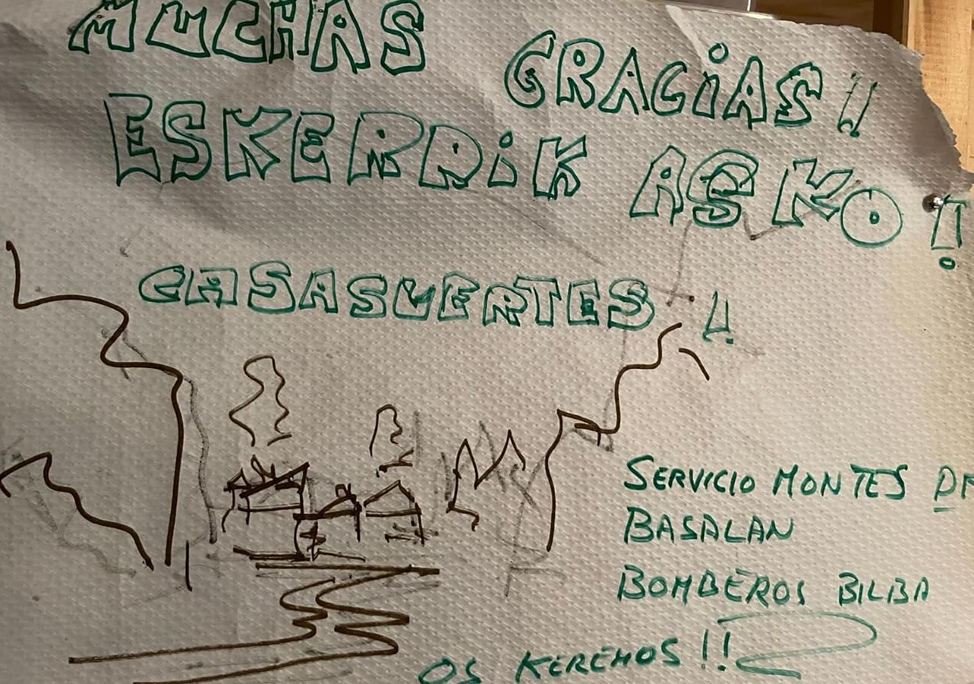 El bonito mensaje de los bomberos vizcaínos al pueblo de Casasuertes, afectado por los incendios