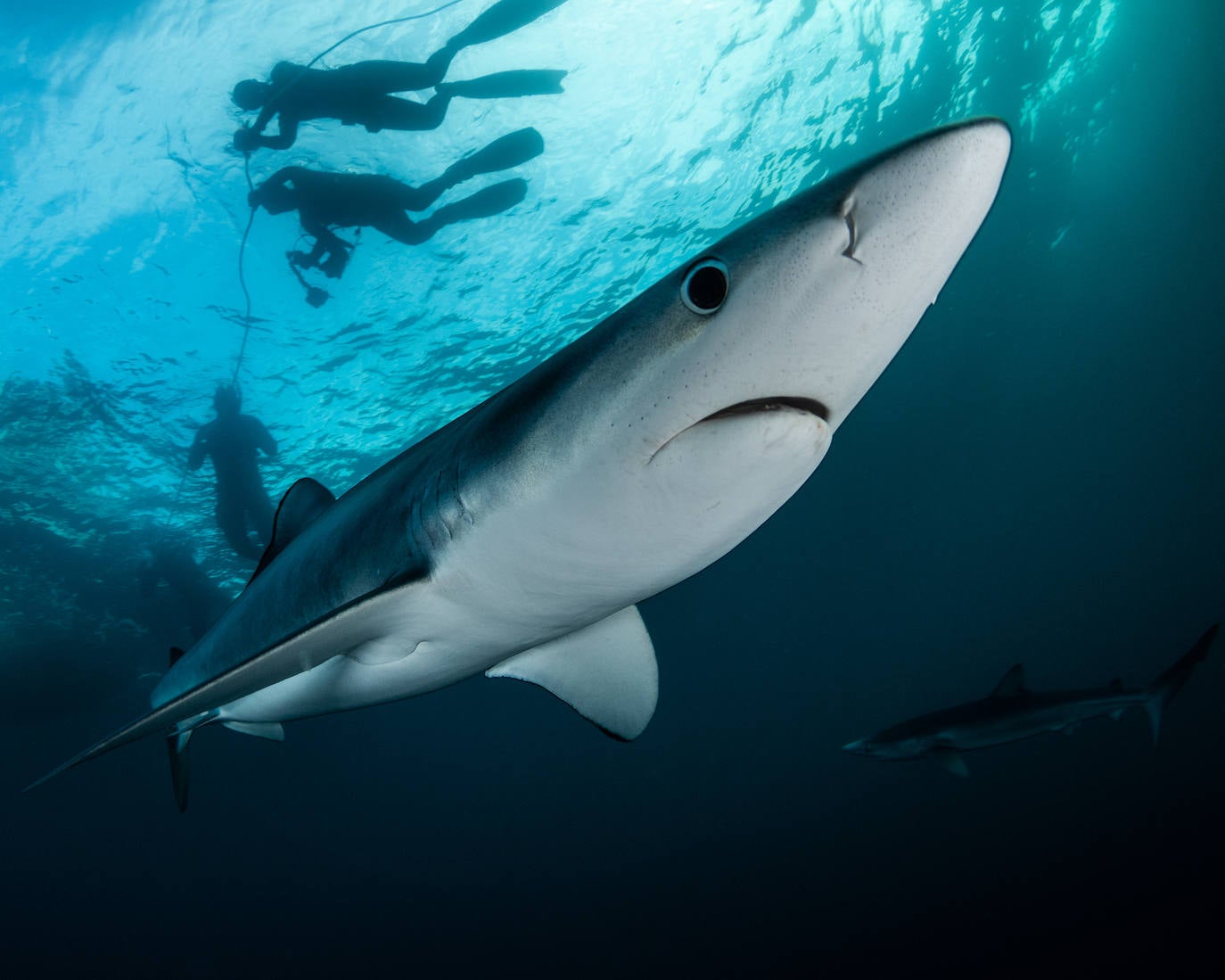 «En general, los escualos son animales bastante huidizos, por lo que conviene llevar a cabo esta primera toma de contacto, para que cojan confianza y no nos perciban como una amenaza», informan desde Mako Pako. A partir de ese momento, los participantes en la salida comienzan a saltar al agua protegidos con sus neoprenos, «uno a uno y con calma». Permanecen sumergidos prácticamente en la superficie y agarrados a un cabo. Es en ese momento cuando las tintoreras comienzan a nadar frente a ellos. «Desde este verano hasta la fecha hemos organizado cerca de medio centenar de salidas y solo en dos ocasiones nos han fallado», subraya Cruz. «A ninguna de las personas que han pasado por aquí les falta un dedo», bromea, por otra parte, el instructor de buceo de Pamplona.