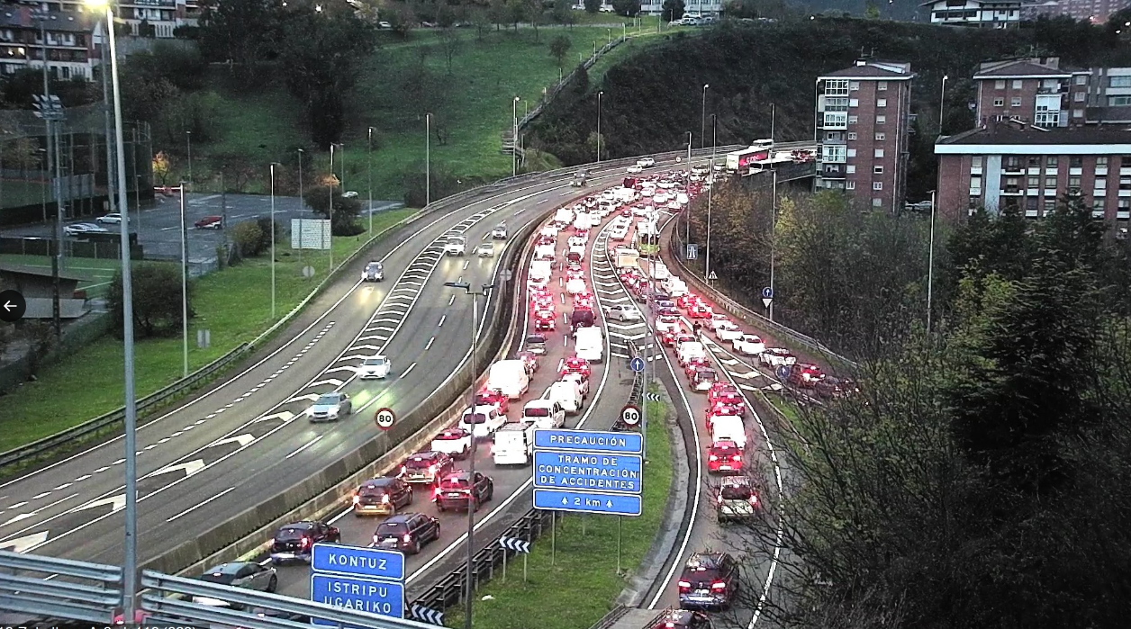 Un accidente en la salida desde Bilbao hacia la A-8, dirección Cantabria, ha generado hasta cuatro kilómetros de retenciones a primeras horas de la mañana de este jueves. El incidente, que se ha producido poco antes de las 08.00 horas, ha tenido lugar en la conexión de la BI-10 con la autovía, a la altura de las curvas de Zorroza.