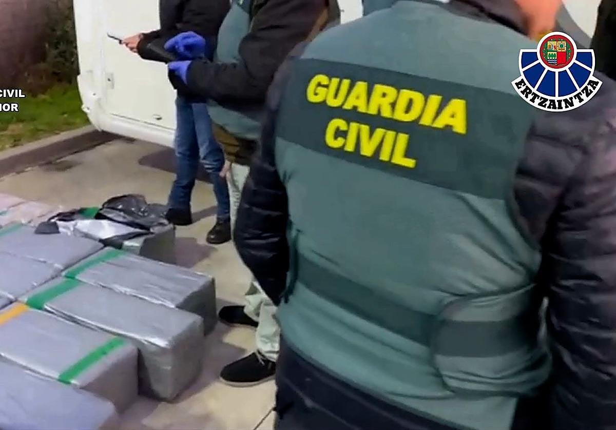 Ascienden a 13 los detenidos por la operación policial que incautó el pasado mes de diciembre 600 kilos valorados en 20 millones de euros, uno de los mayores alijos de la historia de Euskadi. Una operación conjunta entre la Ertzaintza y la Guardia Civil, denominada 'Ergu', se ha saldado con el arresto de más de una decena de personas asentadas en Bizkaia, Cantabria, Madrid, Málaga, Jaén y Salamanca. A finales de año ambos cuerpos procedieron a la detención de tres miembros de la organización, entre ellos el cabecilla, mientras intentaban acceder con 600 kilos de cocaína a Bizkaia. Todos los arrestados eran vascos y con antecedentes en tráfico de drogas. Uno de ellos viajaba en una autocaravana y los otros dos en un 'Audi S3' para alertar de la presencia de la Policía.