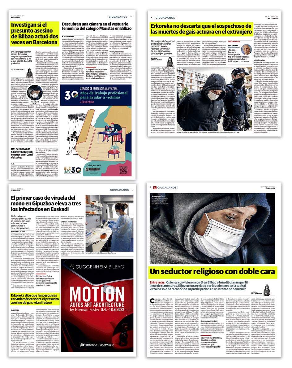 La comunidad gay vivió con gran preocupación el caso. Con Nelson David en prisión preventiva, expertos debaten si hubo homofobia o robo detrás de los crímenes de Bilbao y coinciden en que «resulta llamativo que solo eligiera a hombres homosexuales». A su vez, Erkoreka desvela nuevos datos y afirma que el sospechoso llegó a Bilbao desde Bruselas.