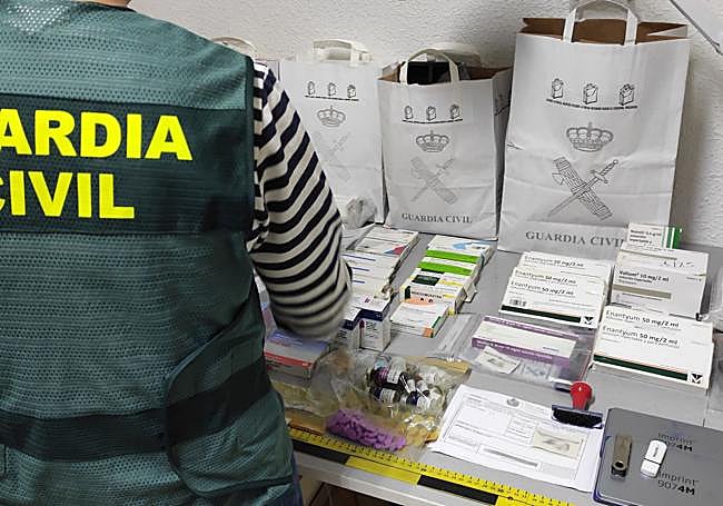 Por otro lado, en el marco de la misma operación, agentes de la Guardia Civil identificaron a un vecino de Majadahonda (Madrid) que disponía de numerosos medicamentos para su posterior venta por redes sociales. El registro domiciliario del implicado permitió a los agentes incautar una gran cantidad de fármacos, sustancias estupefacientes, recetas y sellos falsificados, además de material informático.