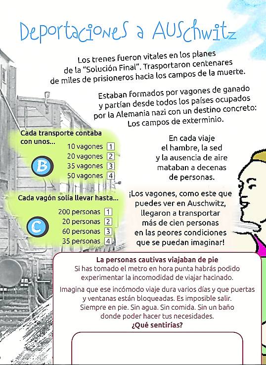 Una de las claves de esta iniciativa es dar a conocer los efectos del nazismo entre los escolares. «Nos hemos puesto en contacto con muchísimos colegios y en el 99% tienen intención de visitar la muestra», aseguran los promotores. La idea es que pueda convertirse en una especie de «aula móvil» donde los alumnos recibirán, al terminar la visita, «un material muy interesante, en formato cómic, que daremos a cada alumno, formulando algunas preguntas que les hagan plantearse cómo fue la vida de estos prisioneros». El Gobierno vasco y la Diputación «han mostrado su interés en apoyar la exposición» y «está cerrado que los 'bizkaibuses' van a llevar unos vinilos de publicidad». También se prevé la visita, a lo largo de ese medio año, de un superviviente del campo de exterminio. Casi con toda seguridad será Marian Turski, vicepresidente del Comité Internacional de Auschwitz y de la Asociación Histórica Judía de Polonia.No será su primera visita. En junio del año pasado, Turski visitó la Casa de Juntas de Gernika de la mano de la APTCE.